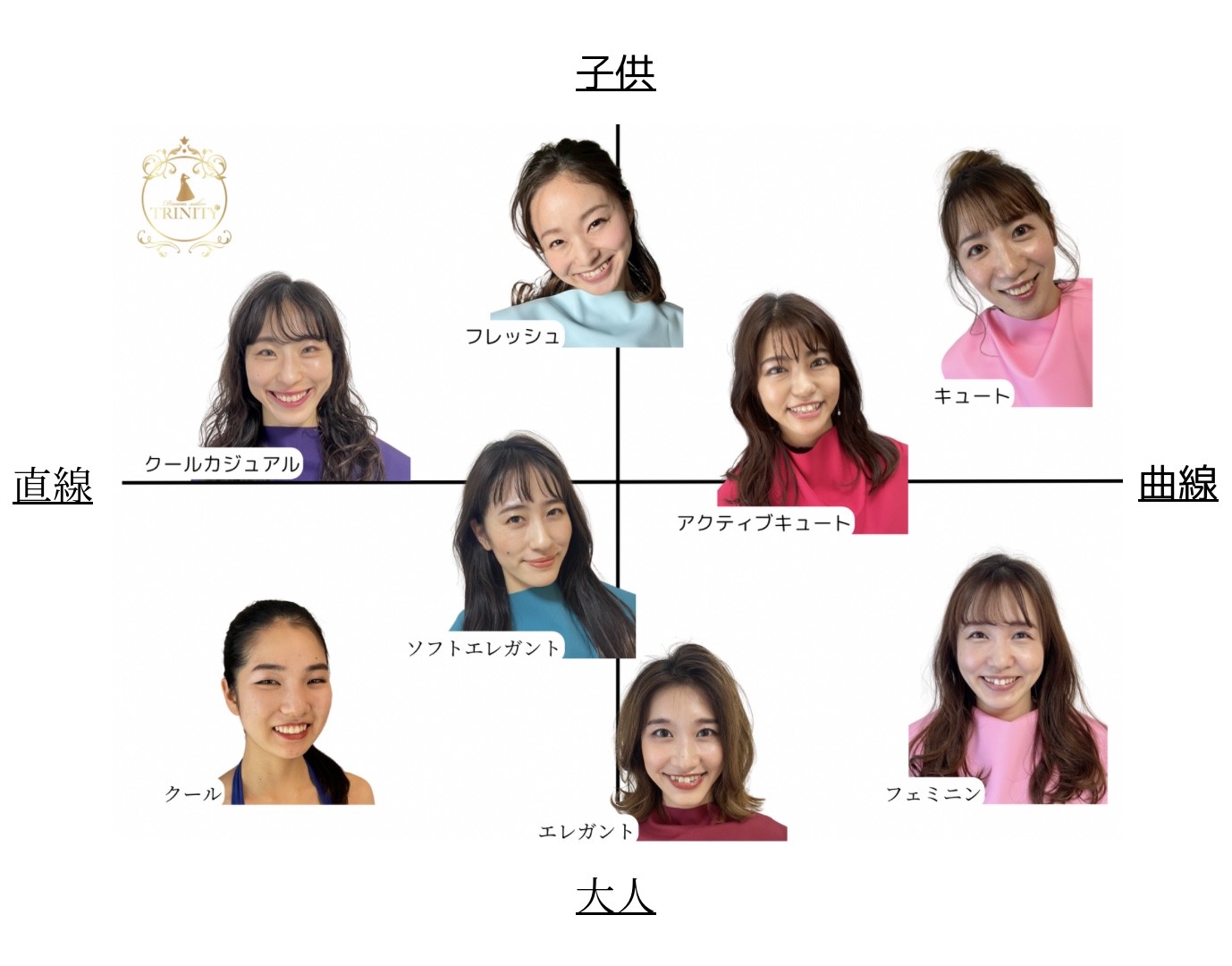 その人の個性である顔の特徴から似合うメイクや服のテイスト、髪型を導き出します。